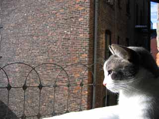 I pulled this photo from my December 2003 archive of cat snapshots. I really like the way Emmitt appears to be contemplating something of great import: "O, this life of mine! Shall I leap from the balcony, and strike pavement below? And will I live, or die? What is death?" There's a reason my ex-wife called Emmitt "our four-legged philosopher friend." :)